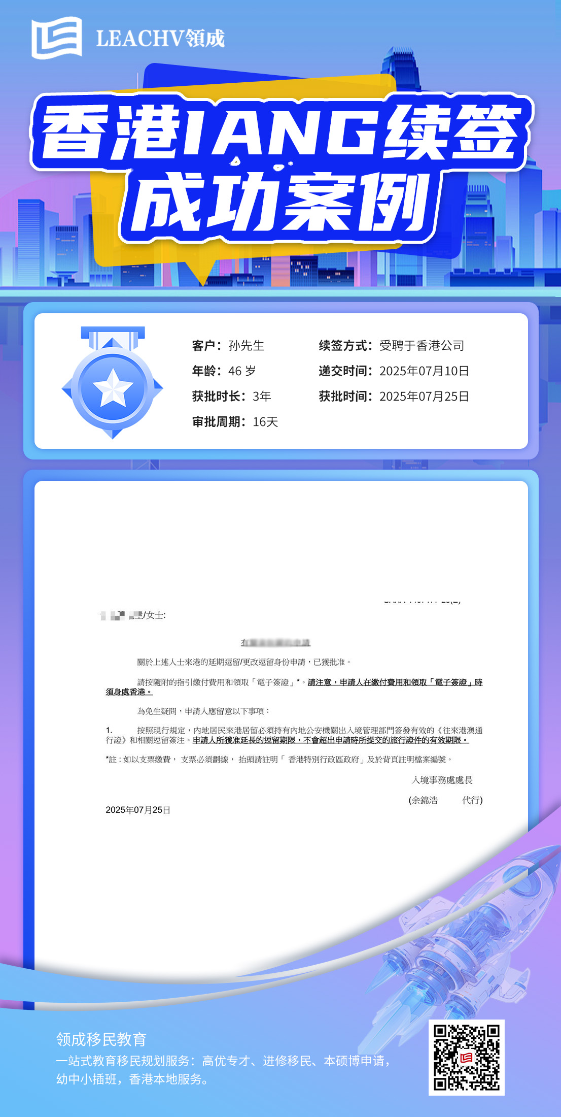 香港IANG续签 成功案例